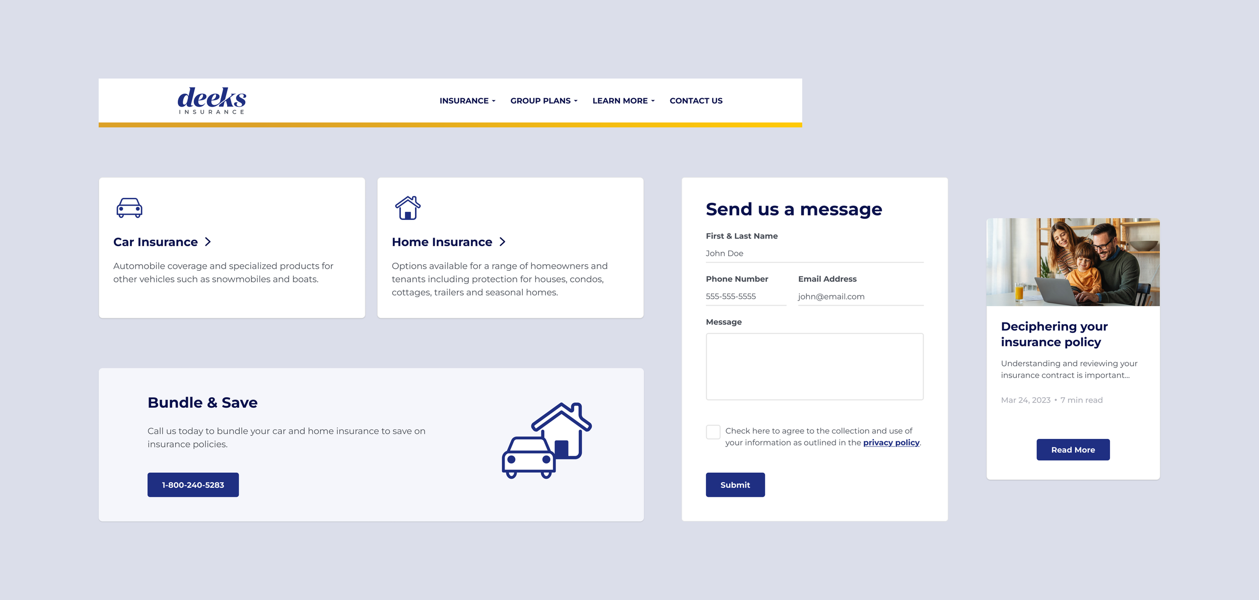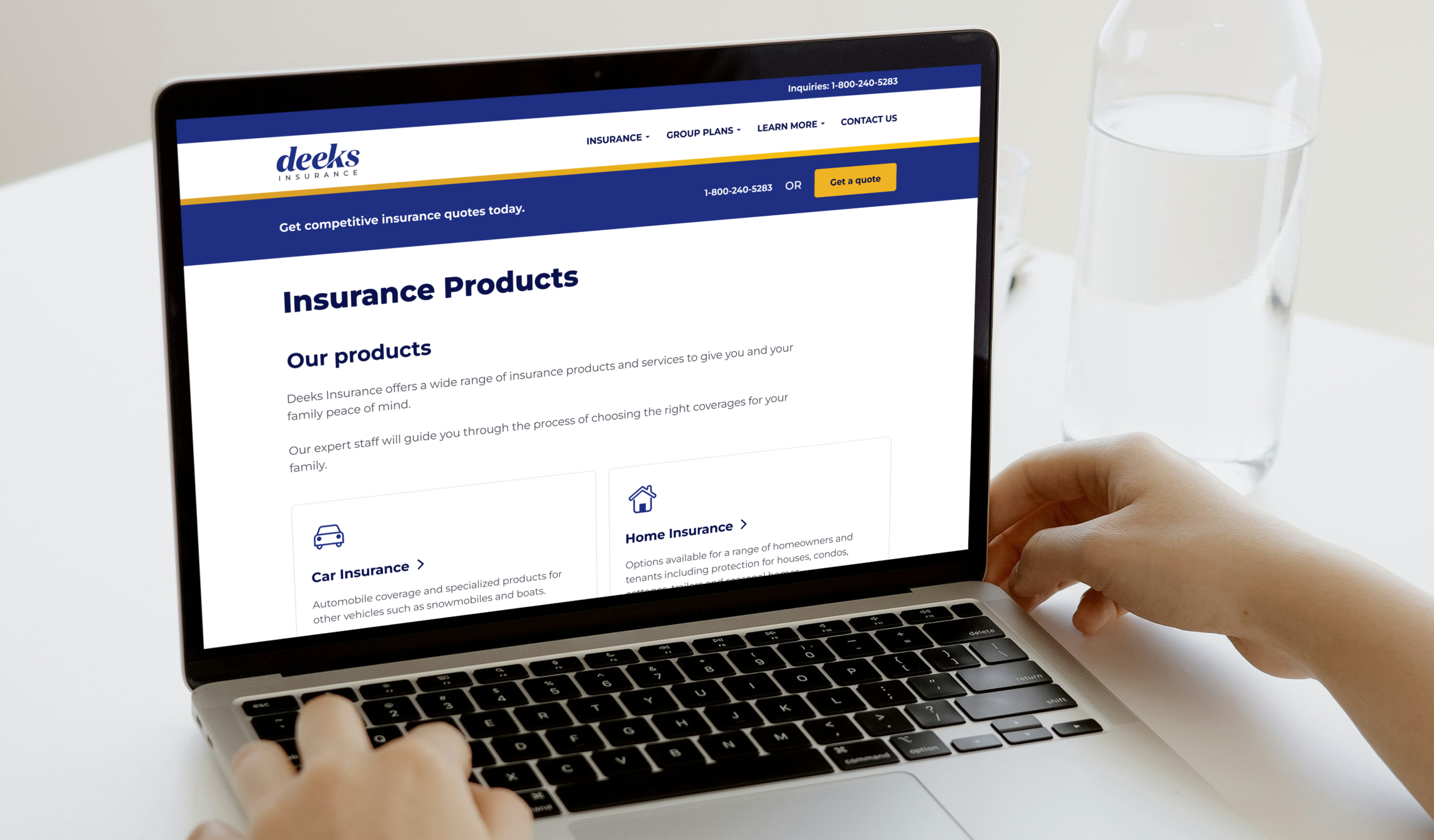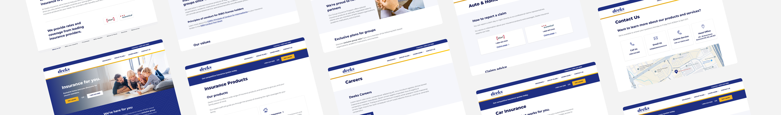 Deeks Insurance is a subsidiary of BrokerLink, a Canadian insurance broker specialized in personal auto, home, and specialty insurance, with a focus on providing group rates to members of faith-based organizations, charities, and academic institutions. The website allows users to get insurance quotes, policy information, and contact support.Context