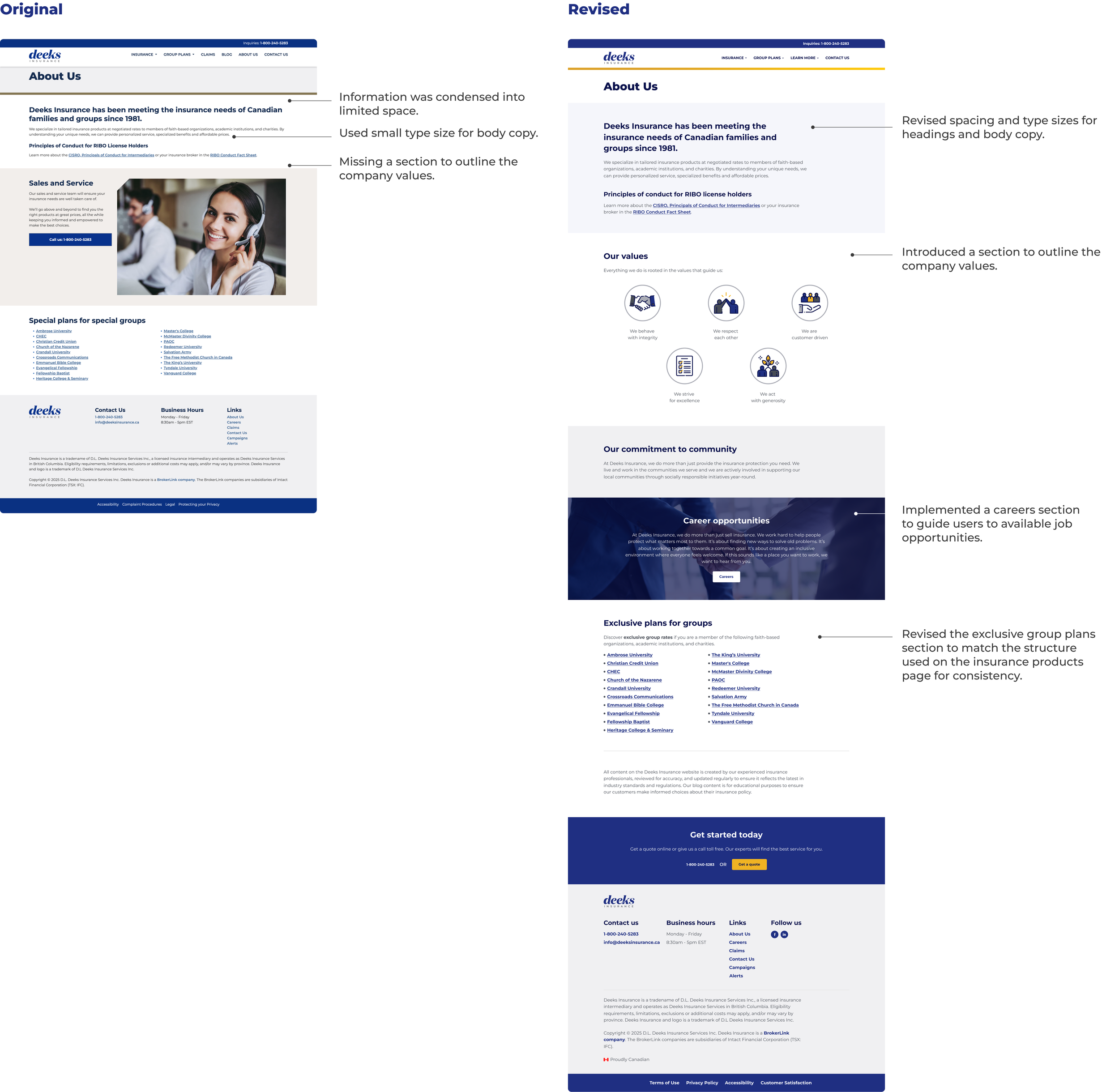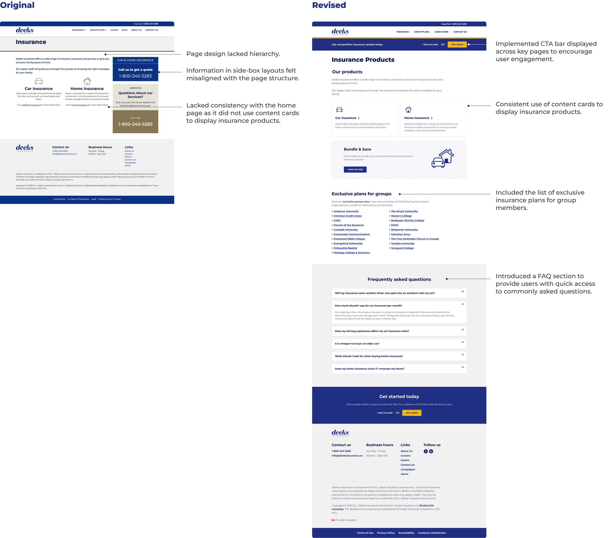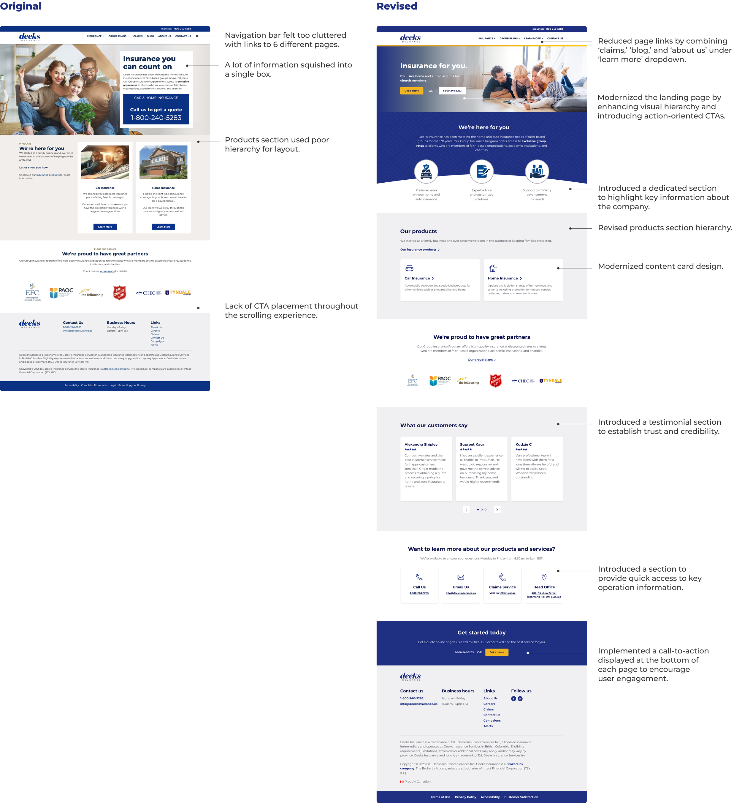 Leading the Deeks Insurance website redesign gave me firsthand experience owning a real-world product project end-to-end, strengthening my ability to make independent design decisions while aligning with developers around clear goals and priorities.Leadership