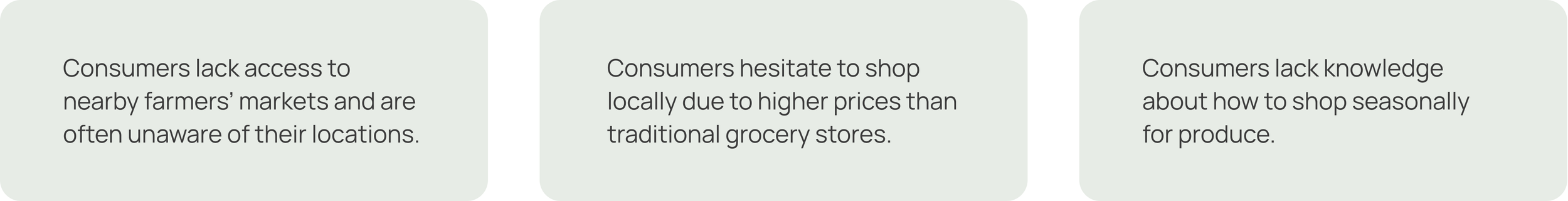 Through secondary research, I recognized that consumers face various barriers to shopping for local foods from farmers’ markets.The Problem