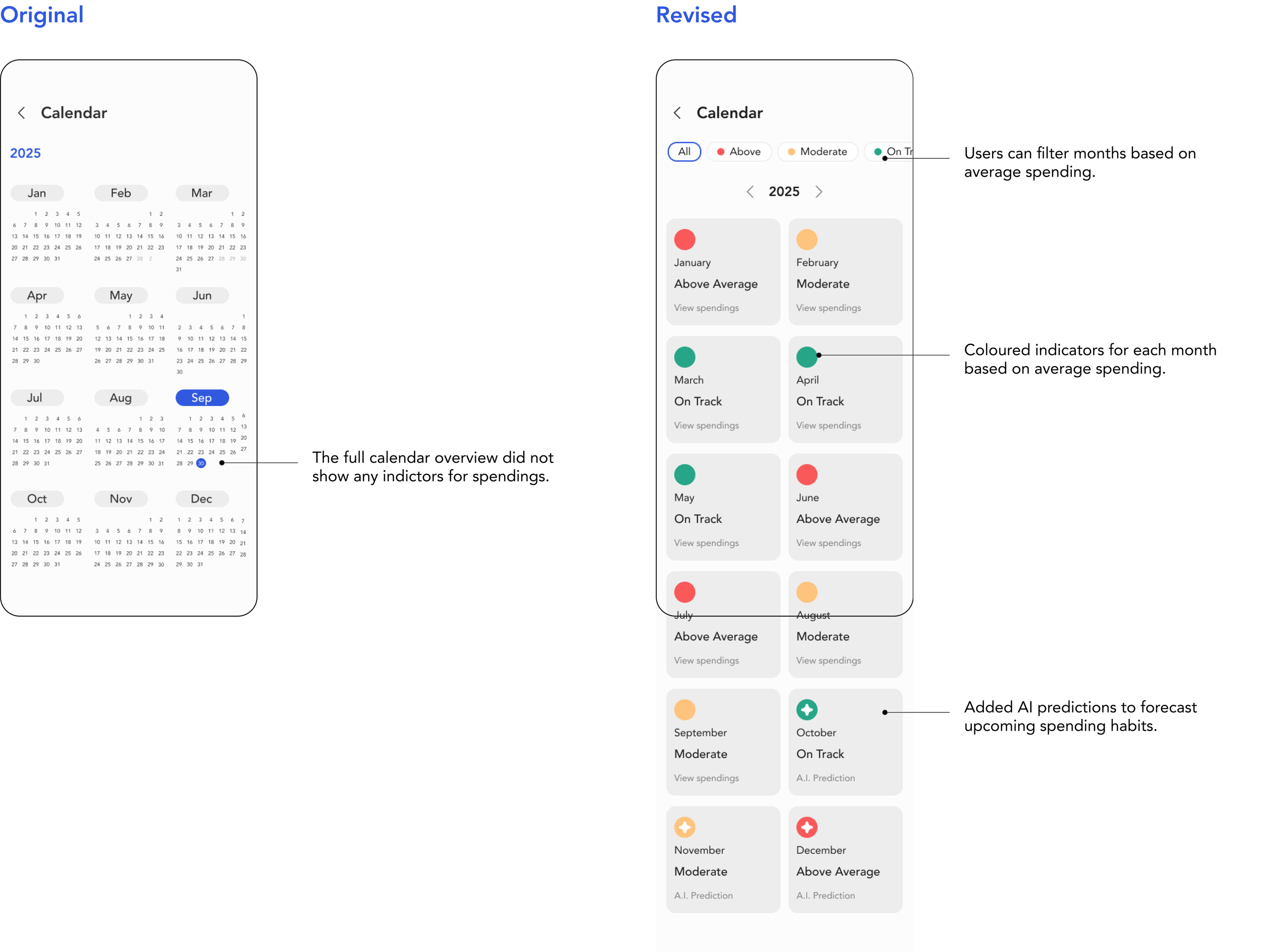 To expand AI within the calendar, the app now offers a monthly spending overview with predictions for upcoming months based on past habits. The AI will provide personalized suggestions to help users stay within their budget if spending habits in upcoming months are predicted to be above average.